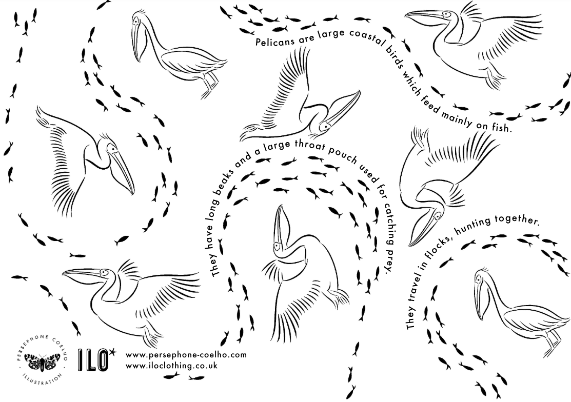 Take flight into a world of coastal charm with these graceful pelicans waiting to spread their wings on your colouring canvas!
