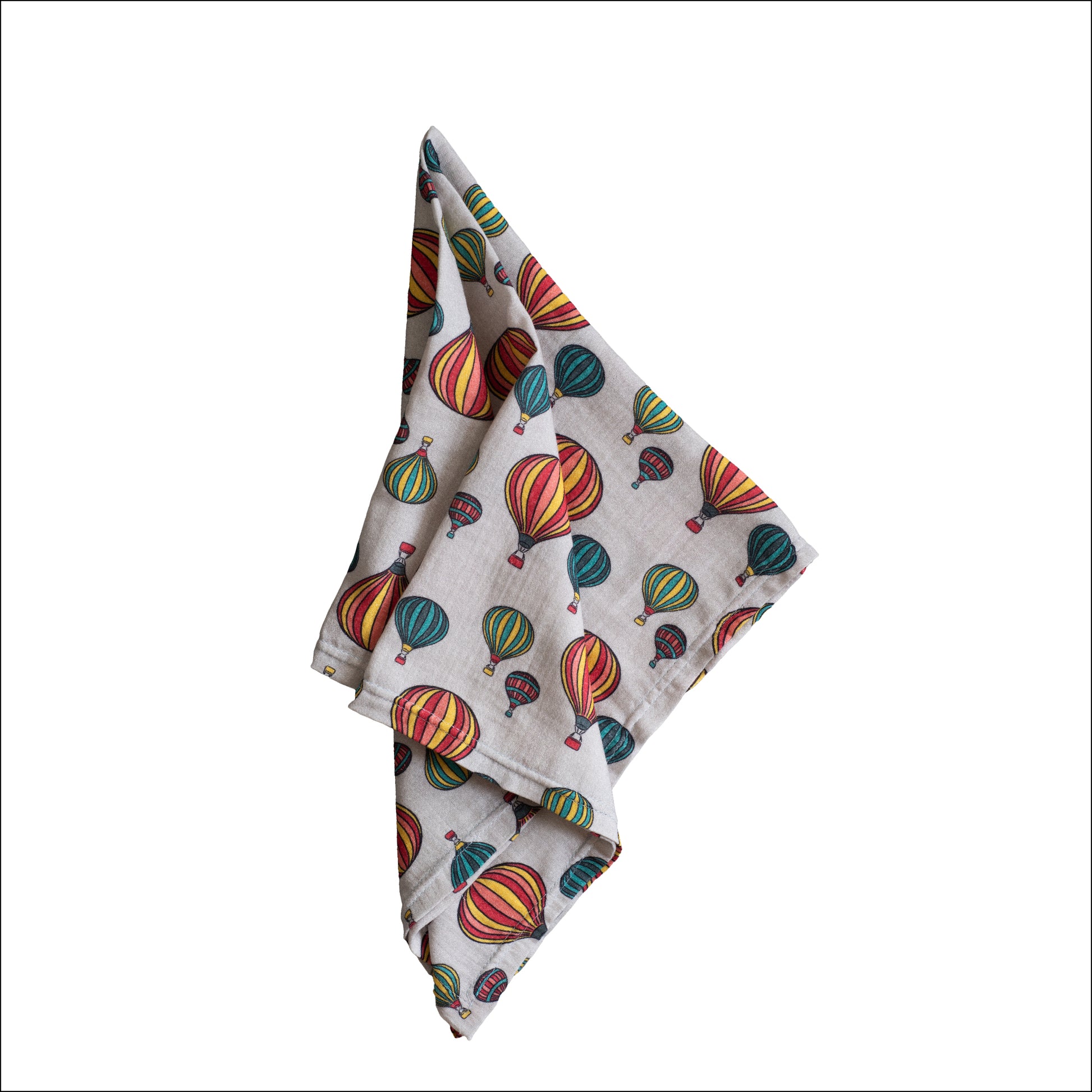 Discover the perfect blend of comfort and sustainability with our Hot Air Balloons Organic Cotton Muslin. Made with certified organic GOTS muslin, our burp cloth is gentle on baby's delicate skin. Beautiful hot air balloon prints and a generous size of 60cm by 70cm make it a must-have for any new parent. Made in Bristol.