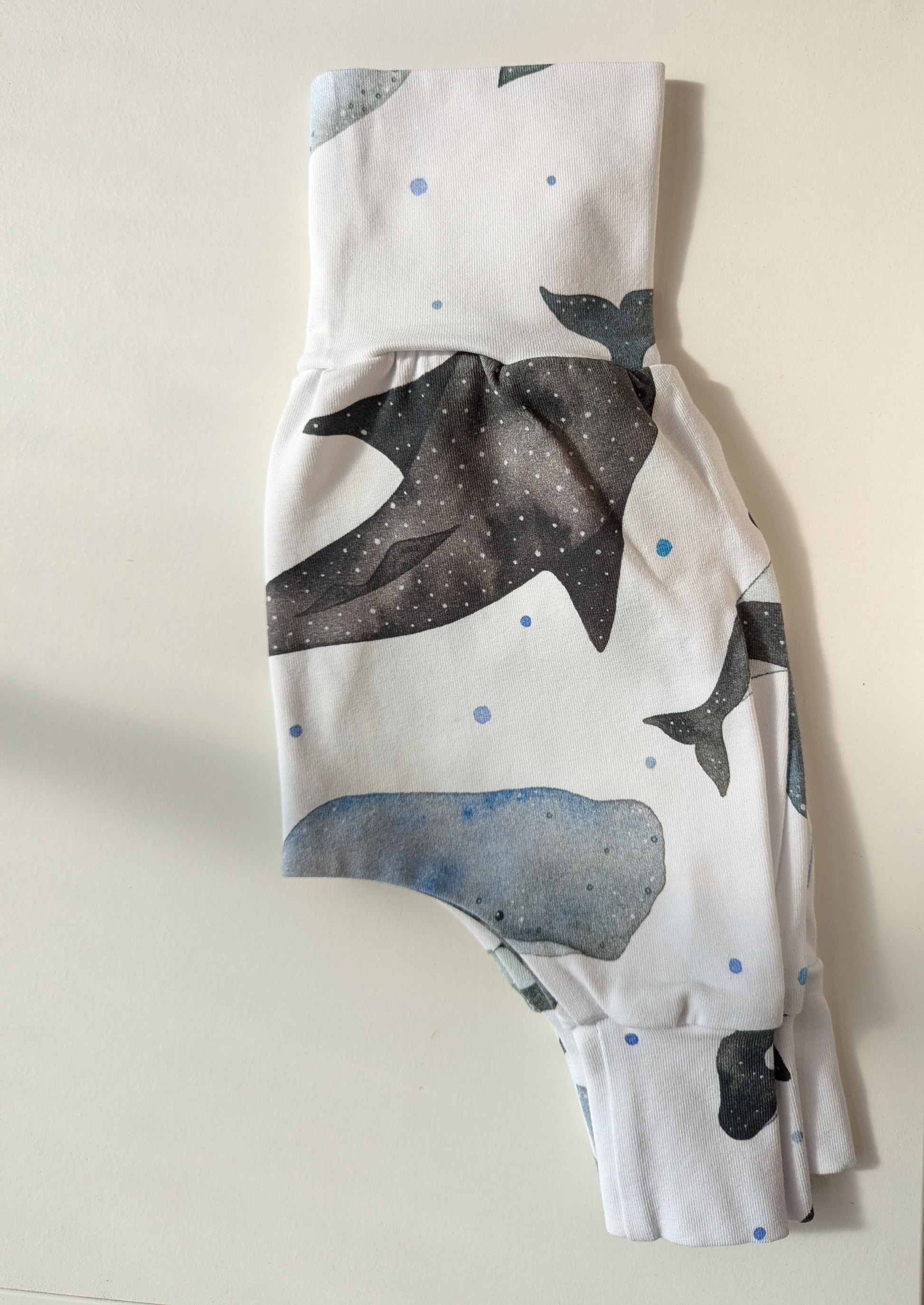 ILO harem expandable trousers, last few in these prints. Whales trousers have a very small mark as shown in the picture, all others are unmarked and new.