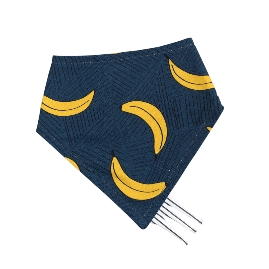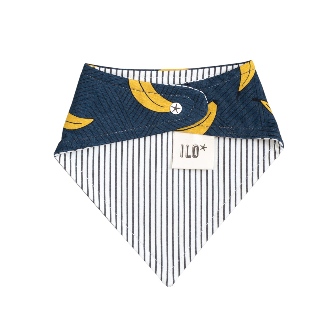 Reversible taggy bandana style bib in our Navy Bananas Print. ILO bibs have a frill for sensory exploration and two print sides. Made with premium organic cotton jersey, this print is a limited edition.