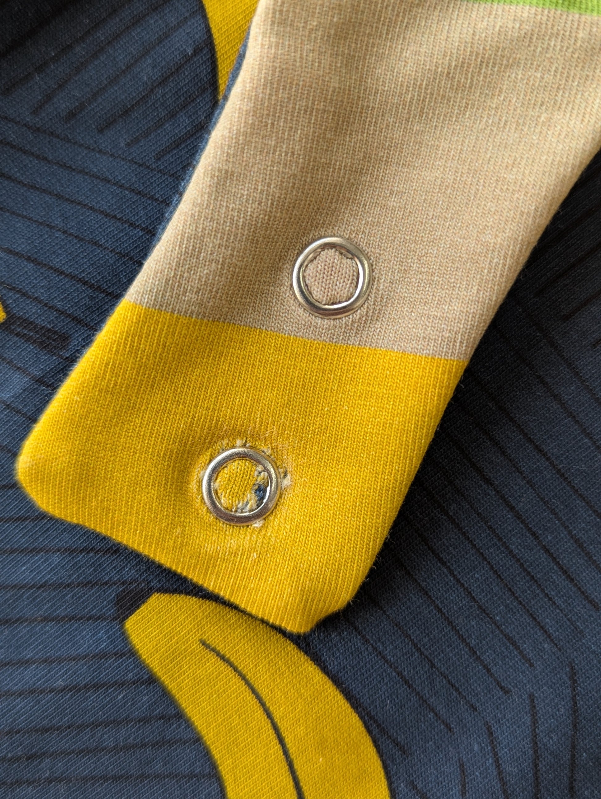 Grid with yellow cuffs: 0-6m, no fault, last in this print. Thicker jersey than ussual.