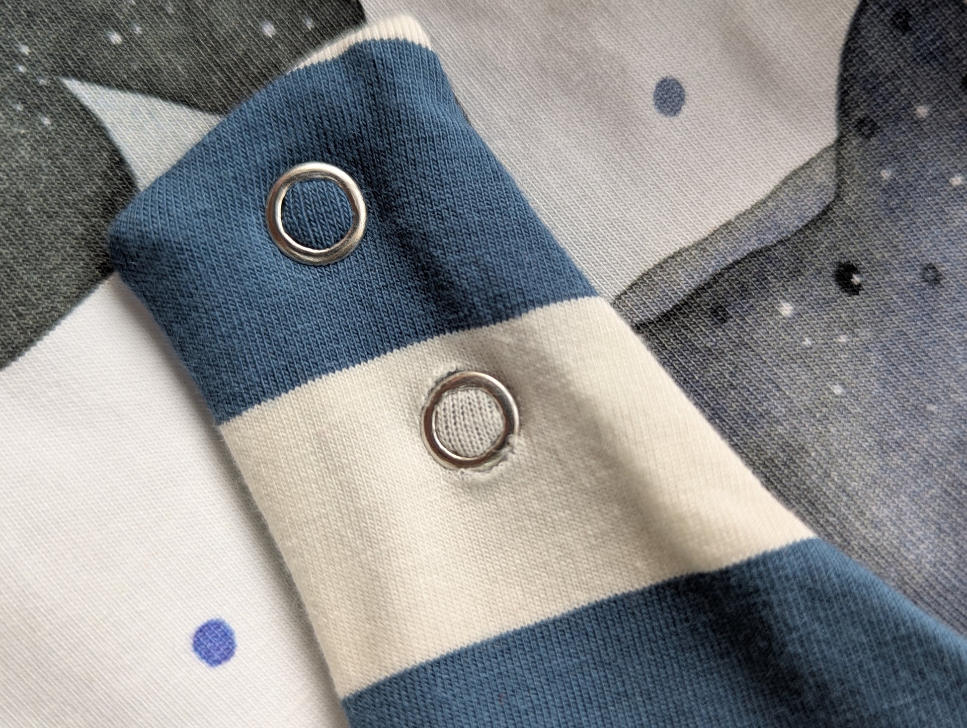 ILO items are handmade in the UK with GOTS certified 95% organic cotton, 5% Elastane unless stated otherwise in the main description. 100% Oeko-Tex certified Stainless steel poppers.