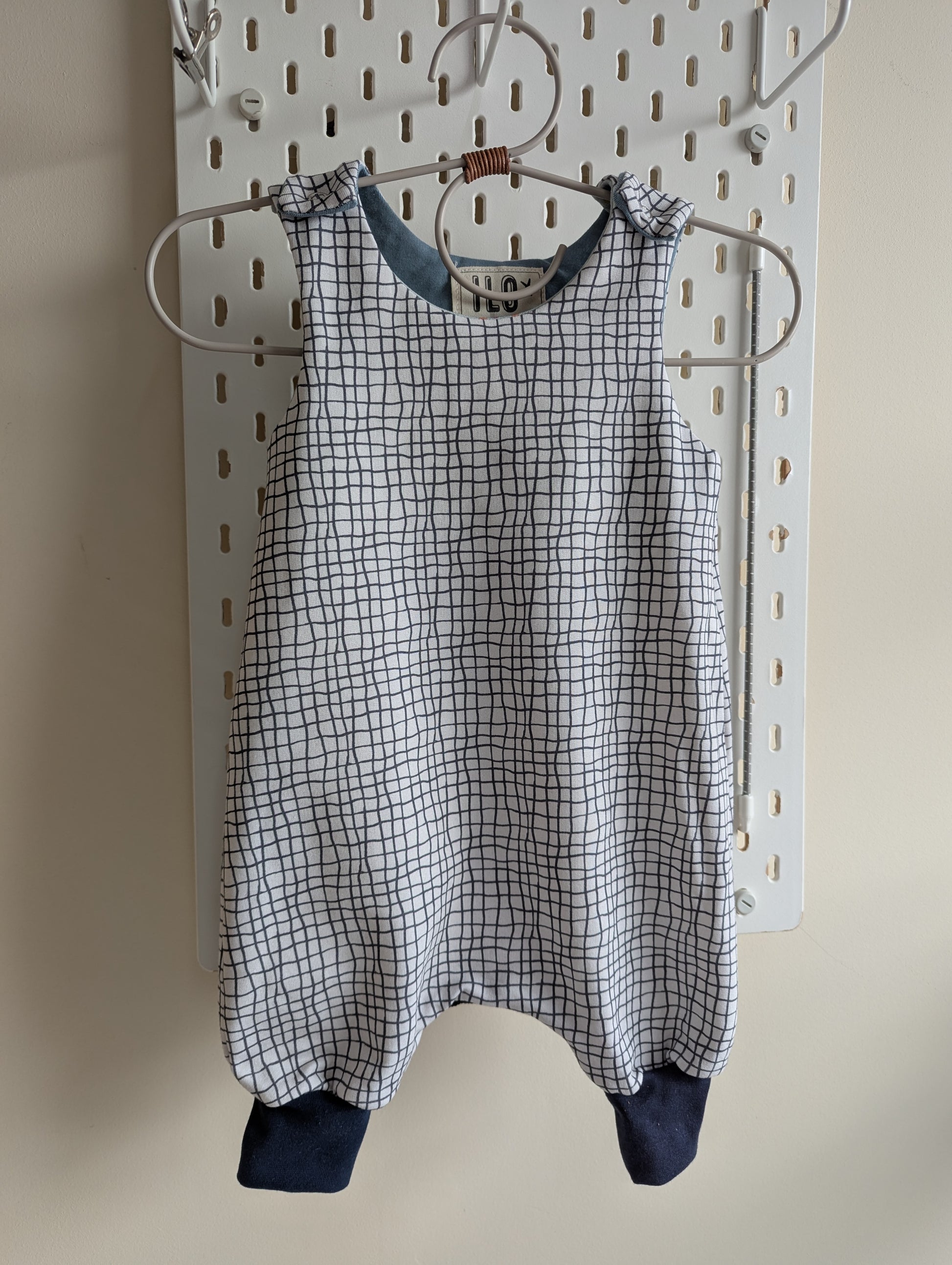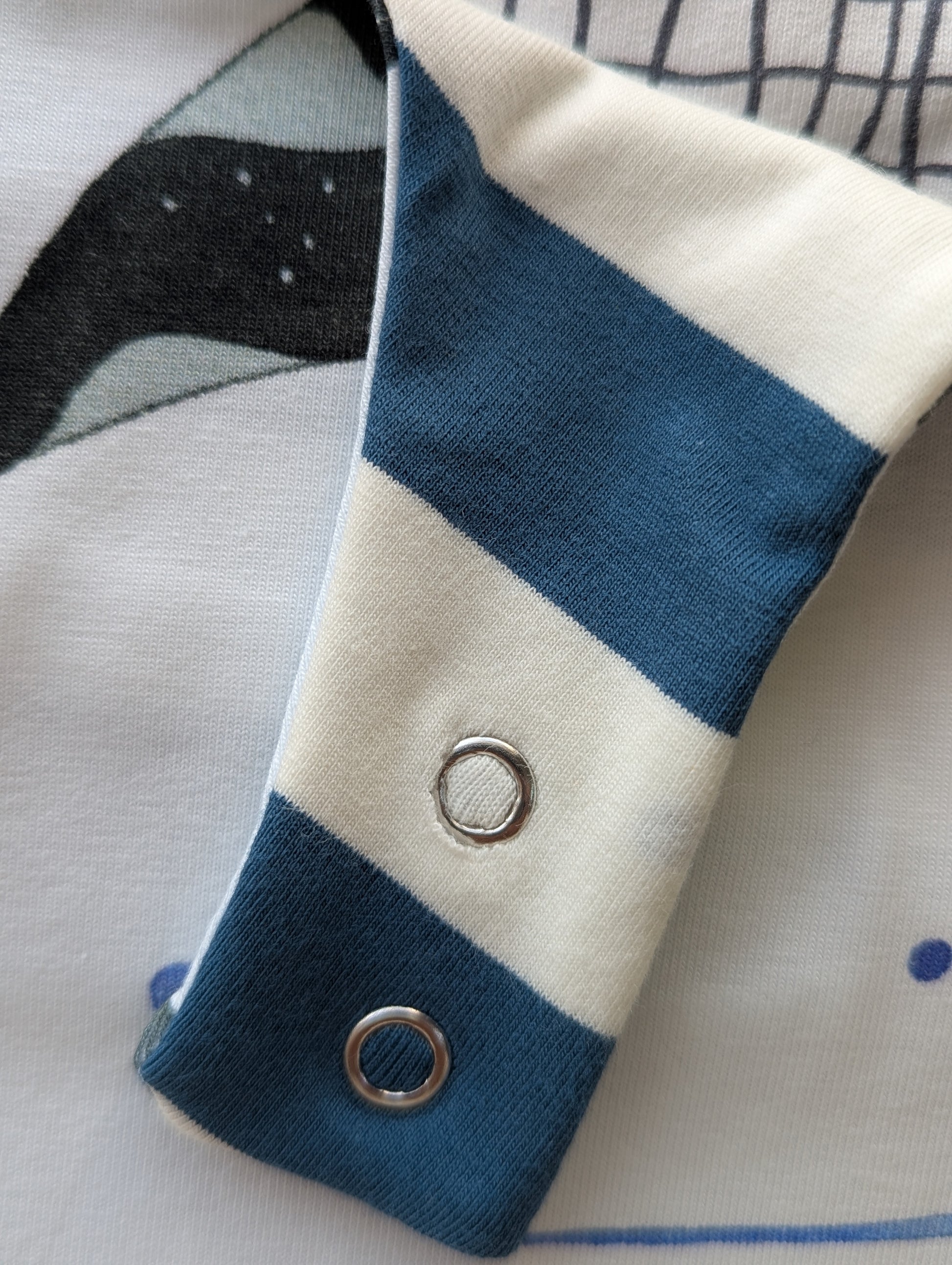Grid with blue cuffs: 0-6m, no fault, last in this print. Thicker jersey than ussual.