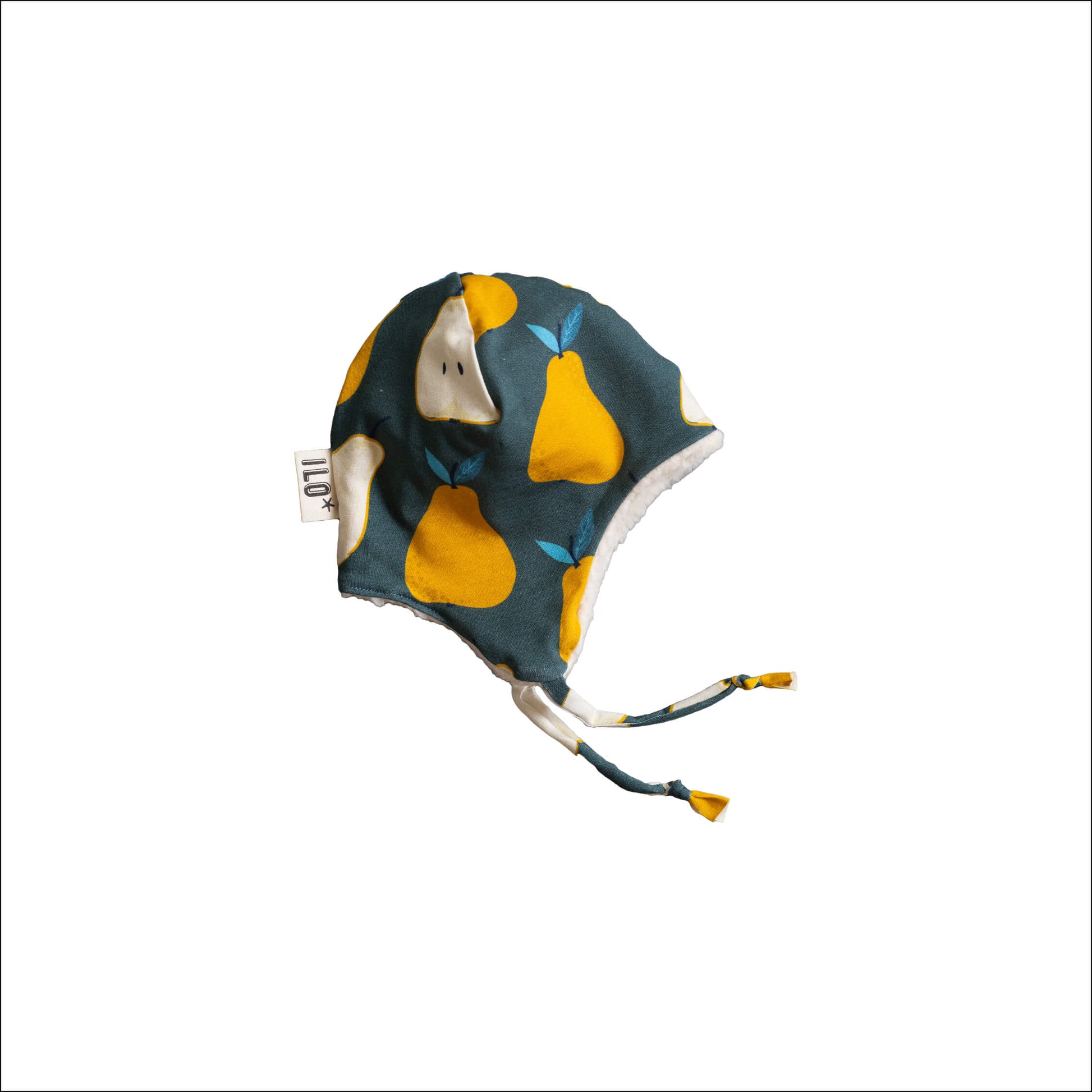Stay cozy and stylish this winter with our Pears Organic Aviator Hat. Made with soft, organic jersey fabric and plush lining, this hat features a trendy pears print and designed for a perfect fit. Keep your little one warm and comfortable, while staying environmentally conscious.