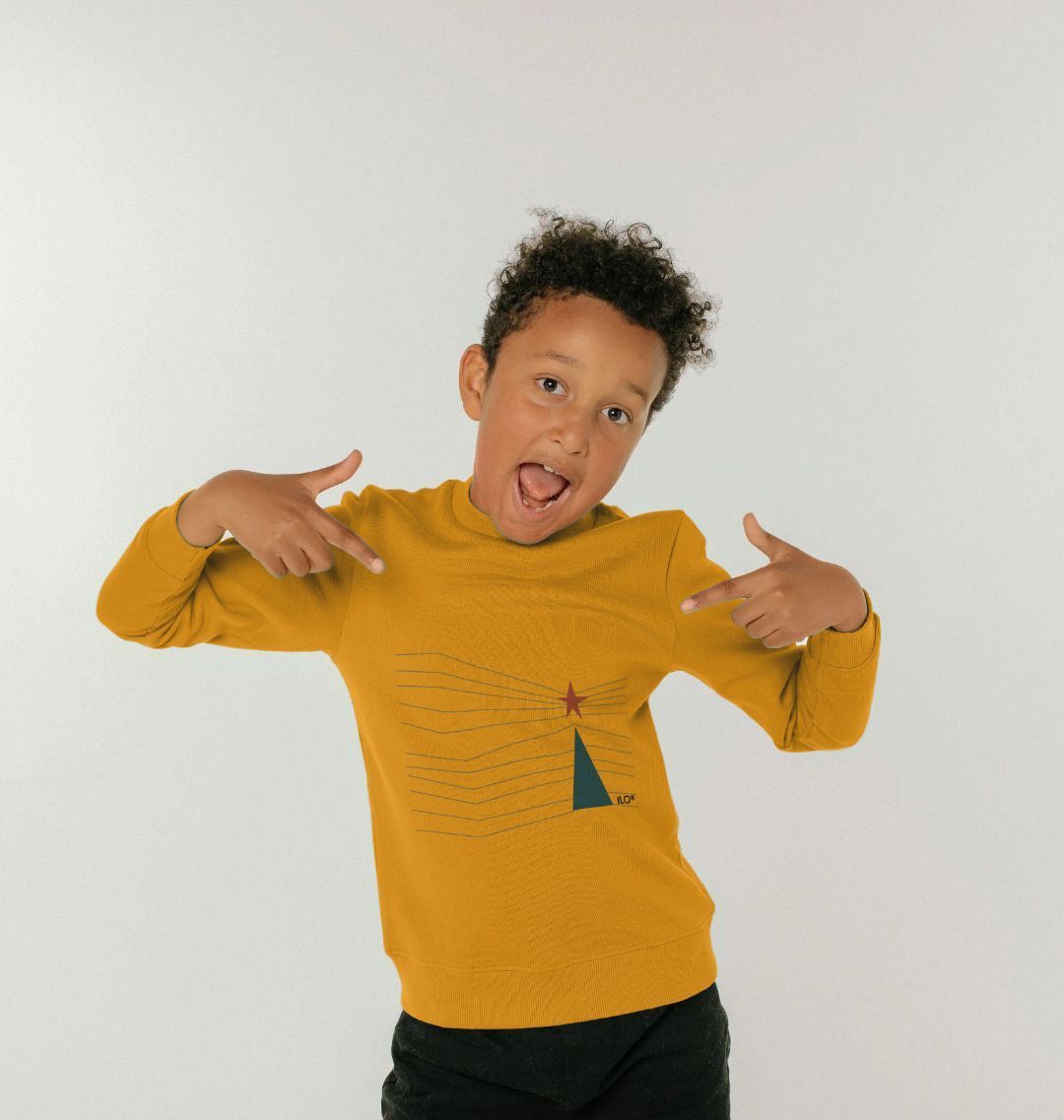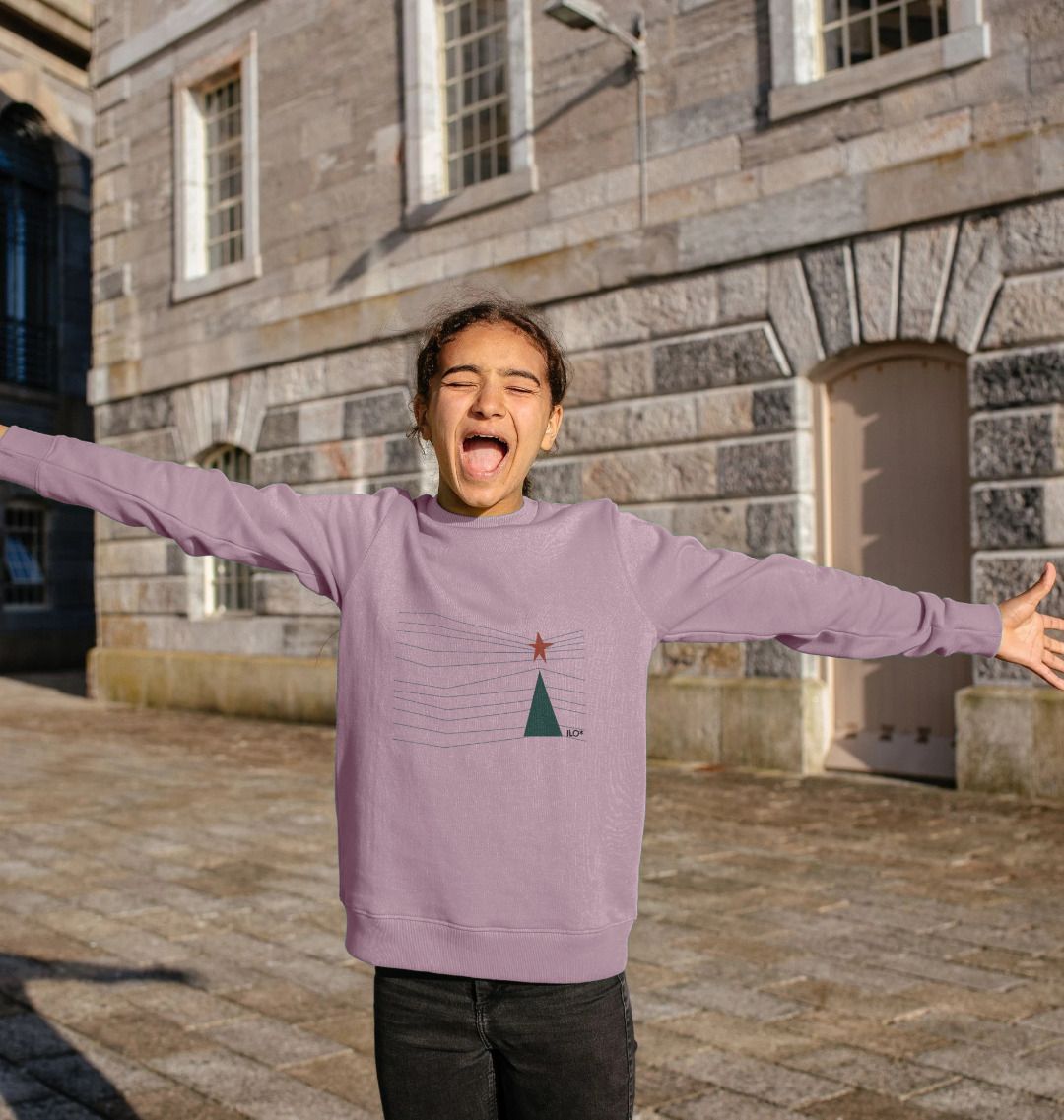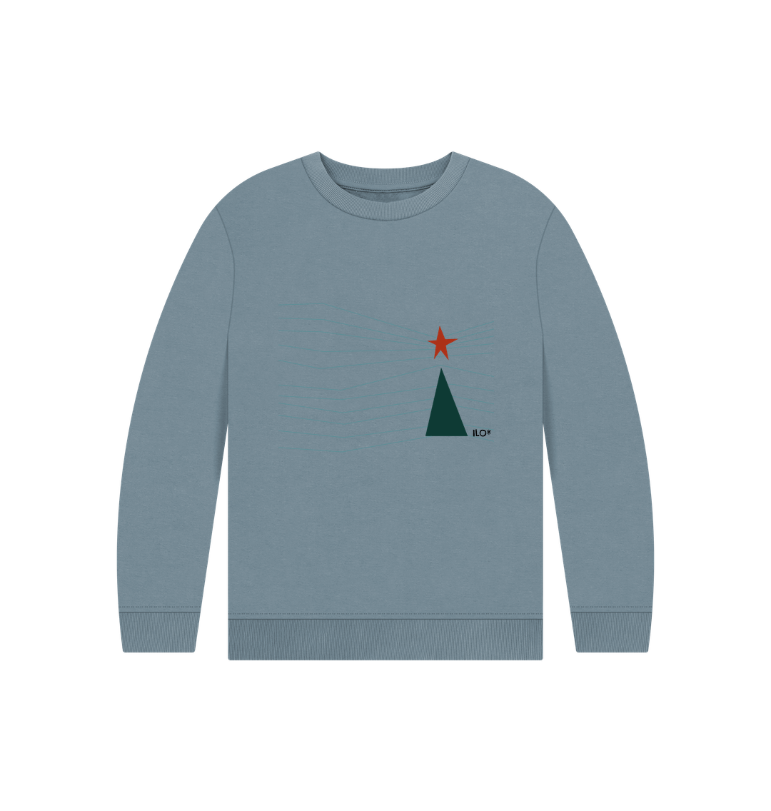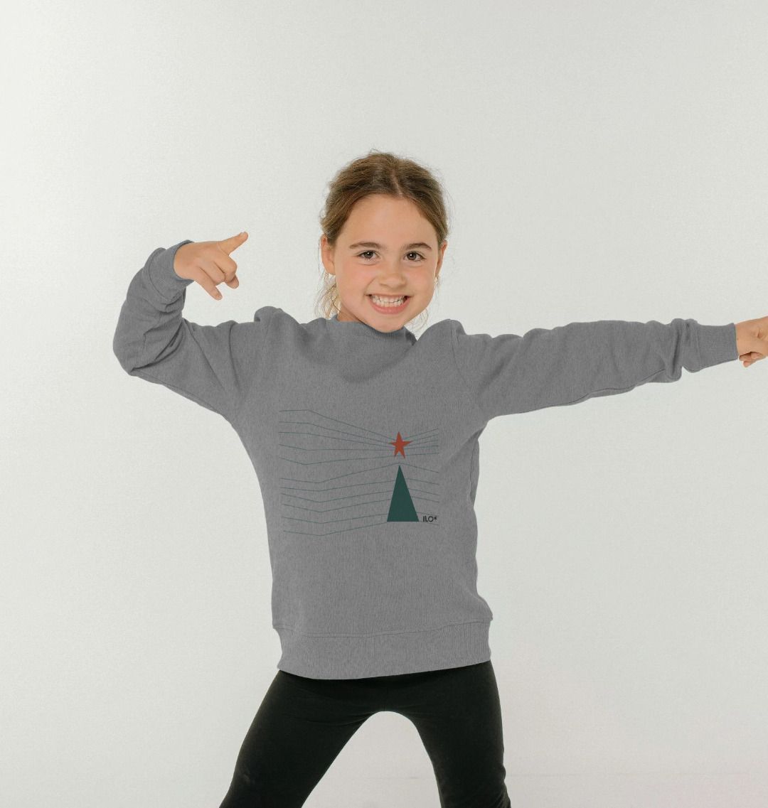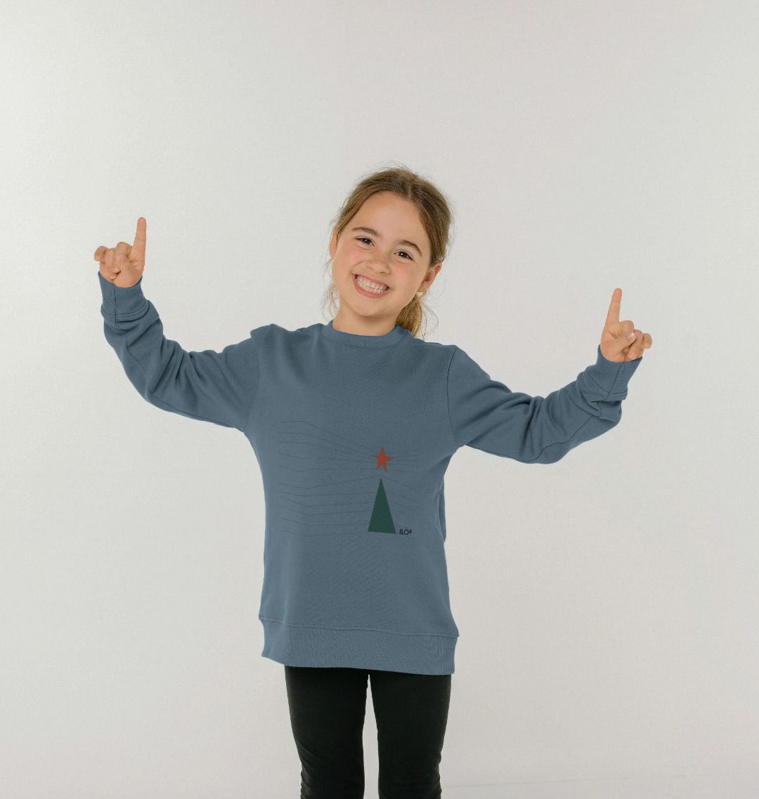 ILO's exclussive Joulu Christmas Tree design printed on an organic cotton kid's jumper.